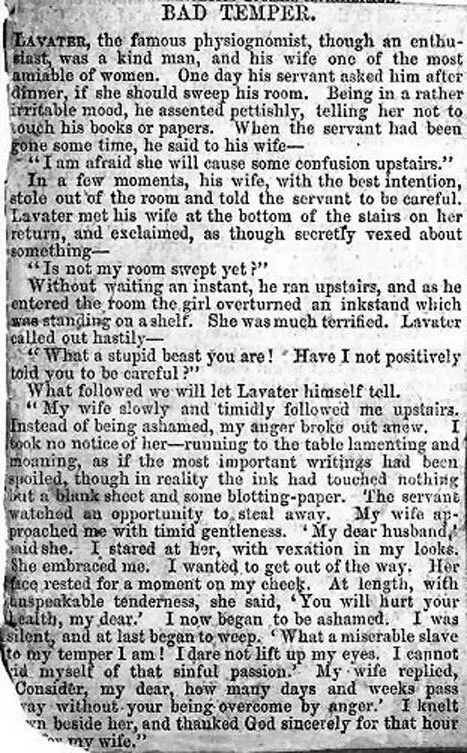 During his lifetime George Burgess cut out and stuck over 500 articles from Victorian era newspapers, most of which are copied and transcribed on this side. Two of those articles, entitled `Phrenologist' and one on 'LAVATER (the famous physiognomist') are copied below: