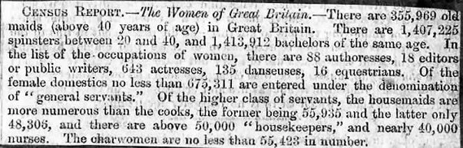 *Likely to be from an early 19th century census e.g. 1851 or 1841 as by 1861 there were over six million unmarried women (excluding widows), see the Census Records 1861 (UK Population Tables) above?